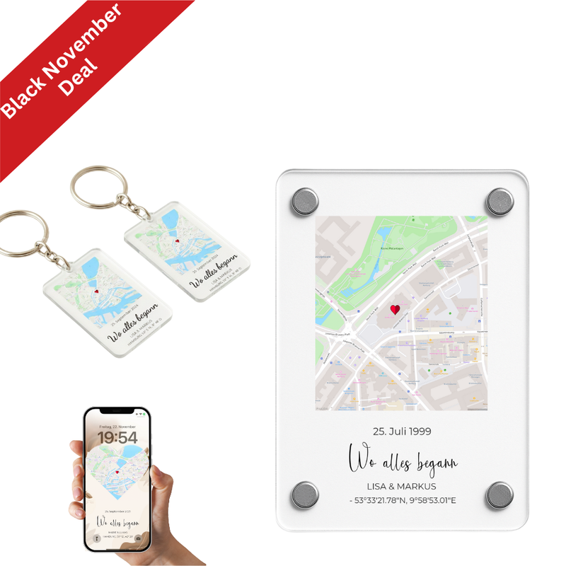 “Dove tutto è iniziato” - Luce notturna personalizzata (incl. base in legno)