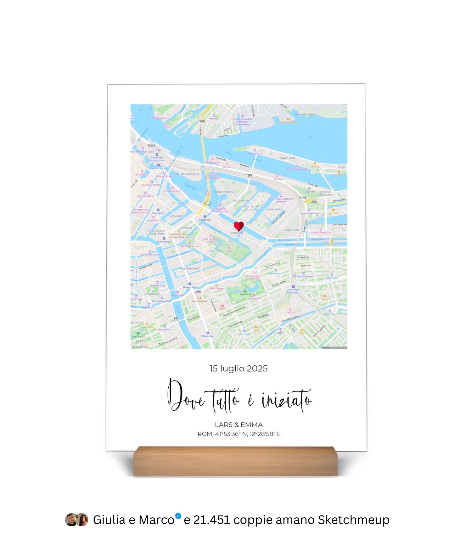 Unico come la vostra storia – rendete eterno il vostro luogo speciale su un’elegante lastra in acrilico.